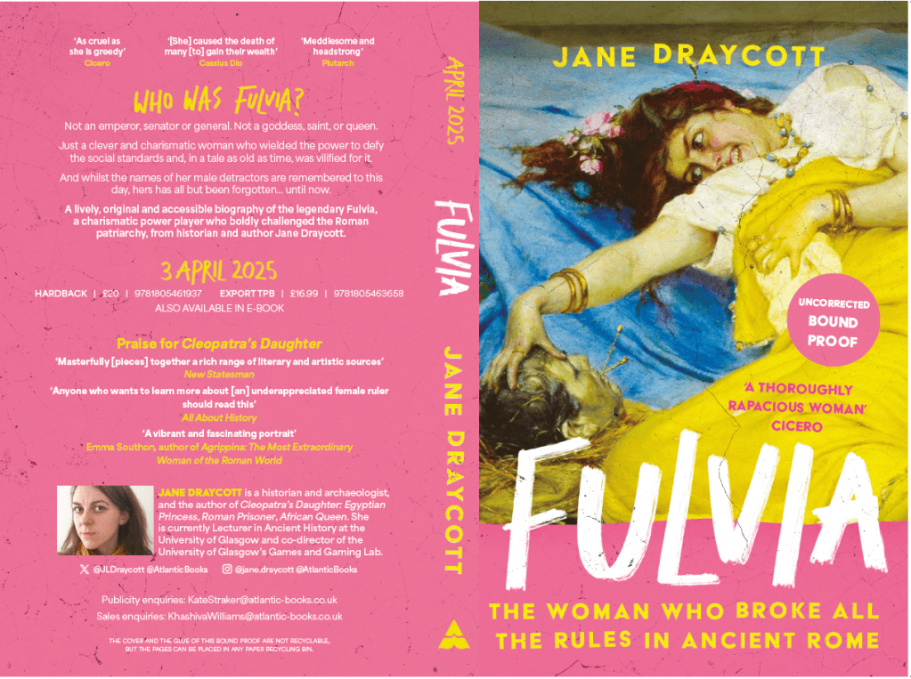Six weeks today, on 3rd April 2025, my second popular history book, Fulvia: The Woman Who Broke All the Rules in Ancient Rome, will be published and on sale in bookshops. There are proofs (also known as ARCs, advanced reader copies) out in the world and they have been popping up on social media, and the people who have read it have really enjoyed it. So who is Fulvia?
